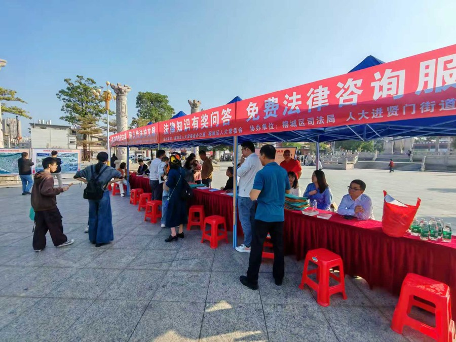 12月6日,针对周末到揭阳古城旅游的游客和群众相对较多的情况,市、区人大和街道人大工委利用周六联合在揭阳学宫广场开展“宪法宣传进古城薪火传法护文脉”现场宣传活动,向群众宣传宪法和《揭阳古城保护条例》等法律法规,同时举办宪法知识竞答、法律咨询、古城建设展板展示等活动。市人大常委会的立法专家还到场回答群众有关法律问题,为群众答疑解惑。活动内容贴近基层、贴近群众、贴近生活,现场气氛相当活跃,宣传效果明显。