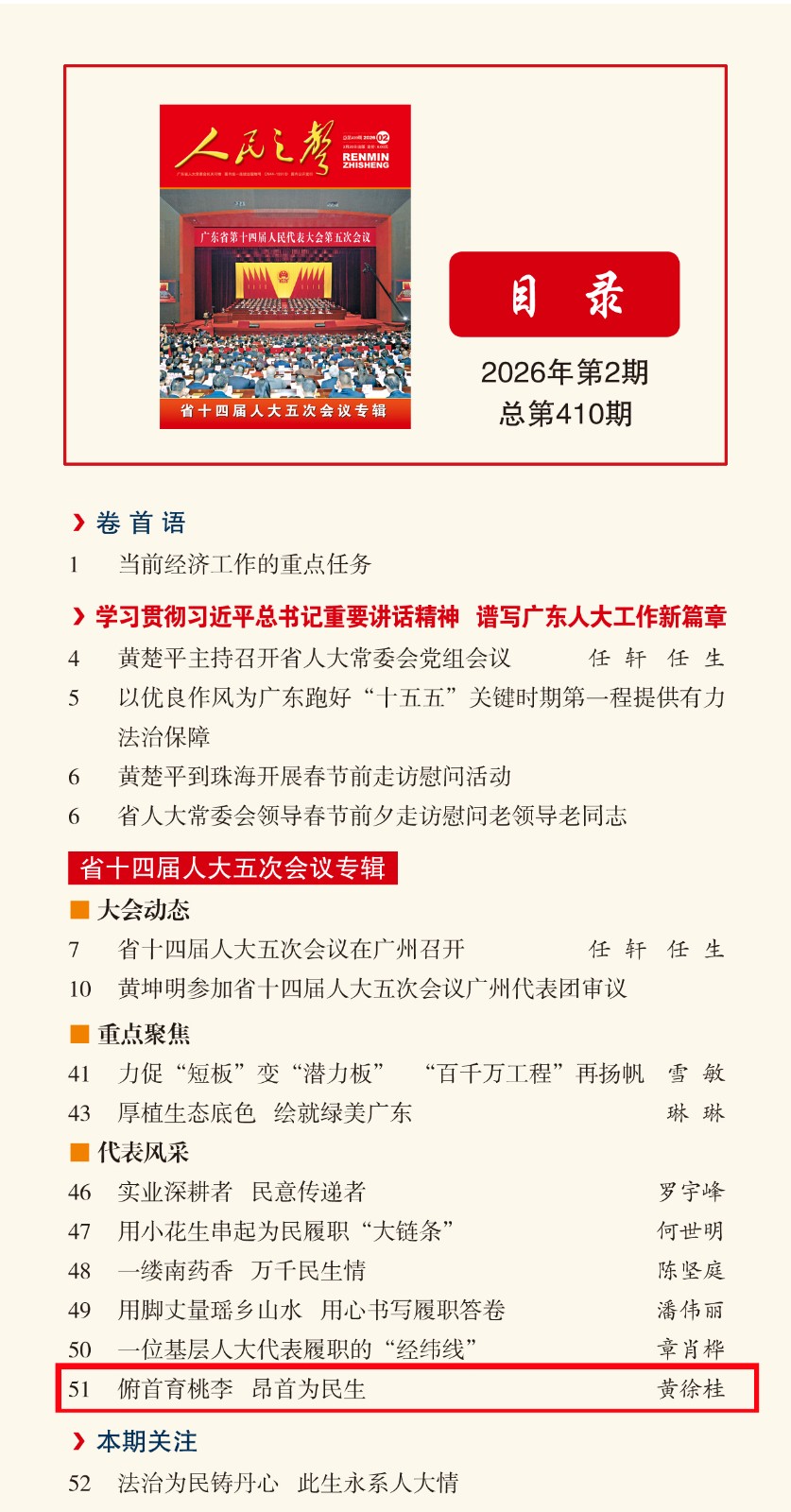 2月20日出版的《人民之声》杂志2026年第2期,刊发了《俯首育桃李 昂首为民生——记省十四届人大代表江周敏》,现转发。